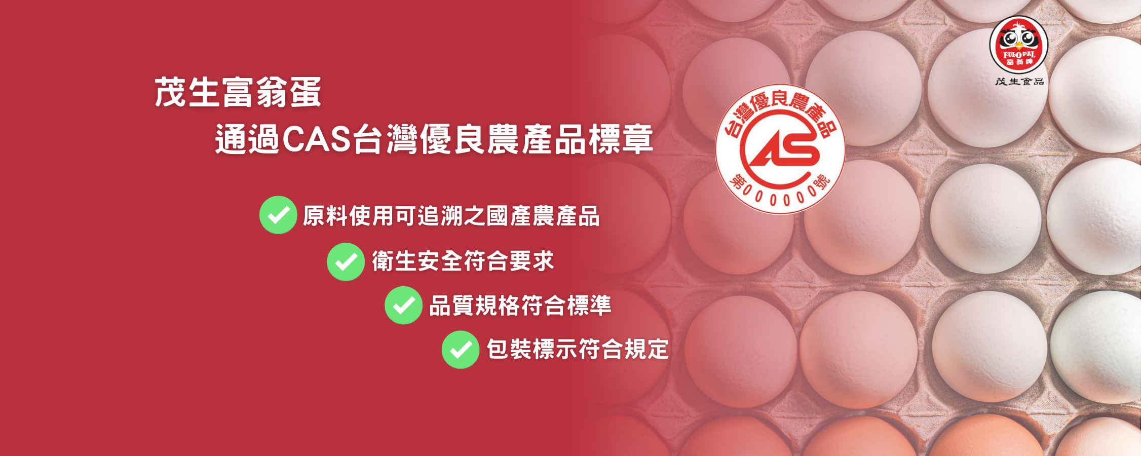 HACCP認證、ISO22000認證、優良農產品CAS認證。